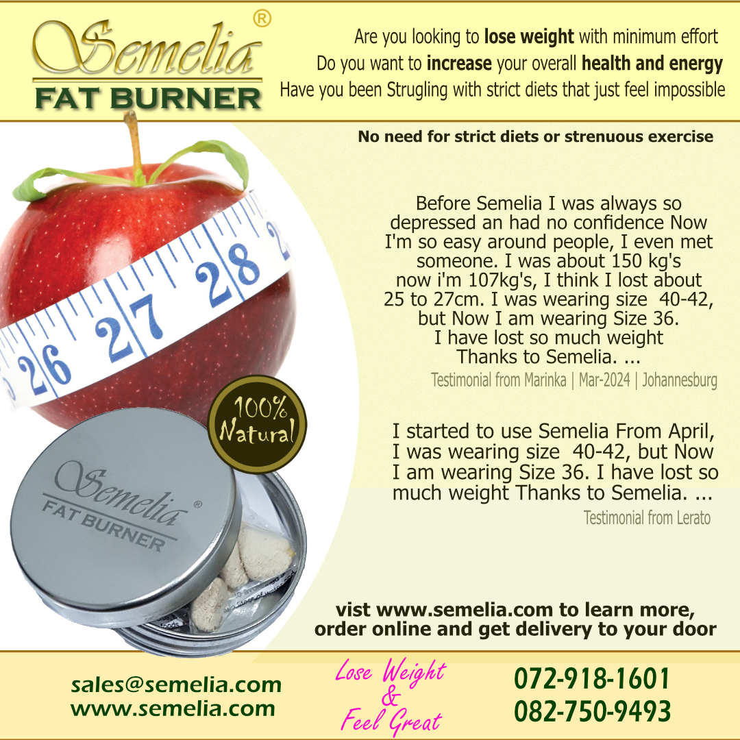 Lose weight naturally with Semelia Fat Burner. Whether you need to fit into a jean or take the strain of your body, losing weight with Semelia will make the journey easier. Semelia works with your body and improves overall health while reducing centimetre’s and kilo’s.